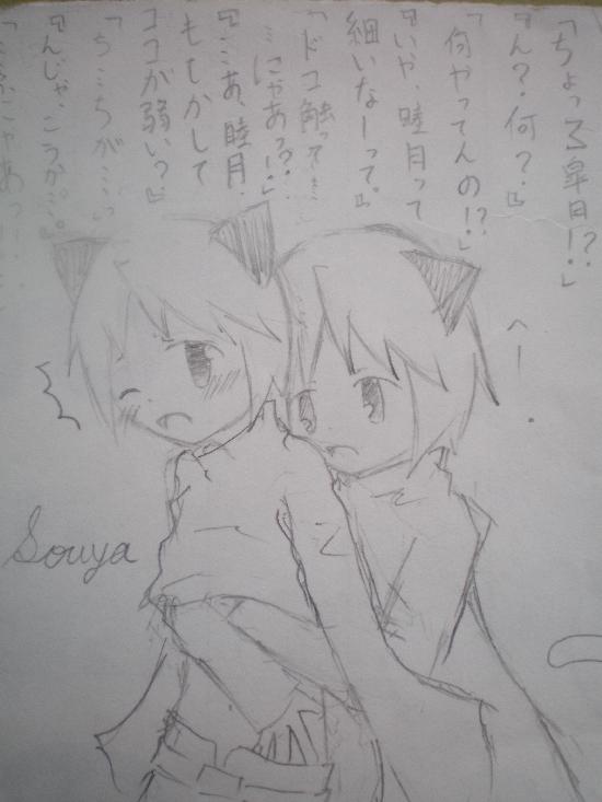 裏じゃない。←(オイ。) どうもです。 何様だゴルァってかんじですね。ちくしょー。 文字薄くてしょうがない。ちくしょー。 でも、個人的には大好きですけどね☆←(うぜぇ) 皐睦もえー。 R15ですかね・・・。 (いや、12かも・・・・。) がっかりしてけって☆ PR |