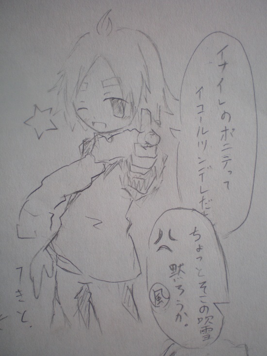 描いてみたよ。 最近は小説が半端じゃなくスランプなんで。 イラストに逃げちゃったZE☆ ・・・って話なんですけど。 イナイレです。 吹雪君ががっかりです。 吹雪ファンは逃げてください。 見ようによっては吹風かも・・・。 がっかりして逝ってーね☆ ポニテについて。 ごめんなさい。 いや、でも、それくらい考えてますって。 PR