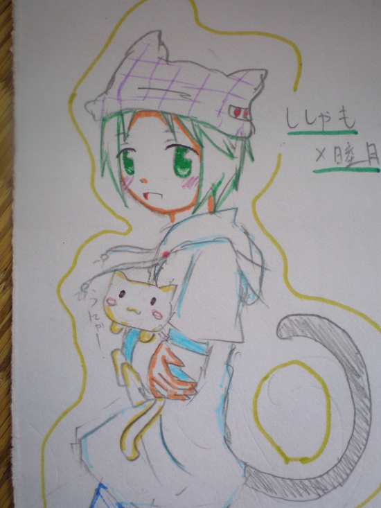 ・・・前にも書いたことありますね・・・。 いいとして。 睦月可愛いです。 隠さない猫耳萌えー。 pop'nの8やってたら、ししゃもっていうキャラが出てきたので、描いてみました。 ししゃ睦気分で描きましたよー。 がっかりして逝ってください。 ししゃも×睦月 ししゃも、可愛いです。 猫同士、いちゃいちゃしていればいい!←(殴) |